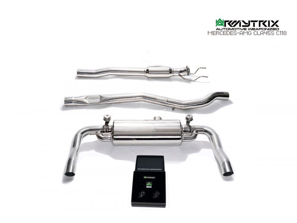The entire system is made of stainless steel and connected to the tips in the rear bumper. No modifications are required for the installation of this system; it is perfectly fitted to the car. The system can be expanded with a high-flow downpipe with a sport catalytic converter 200 CPSI or a straight-through downpipe De-cat.