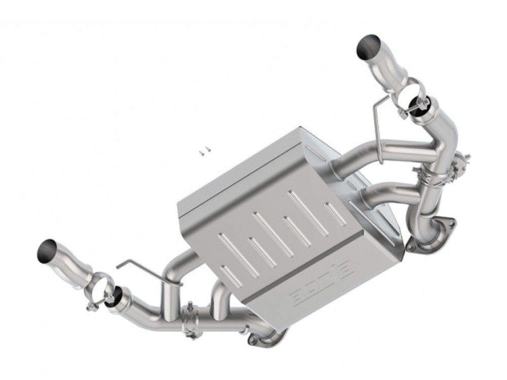 The entire system is made of stainless steel. The exhaust uses the original tips in the rear bumper. The system is perfectly fitted to the car, and installation does not require any modifications.