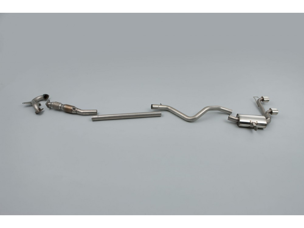 The entire system is made of stainless steel and finished with 2 tips. Modifying the complete exhaust system reduces exhaust back pressure, which translates to an increase in engine power. There are two versions of the downpipe to choose from: with a sports catalyst and a straight-through version.