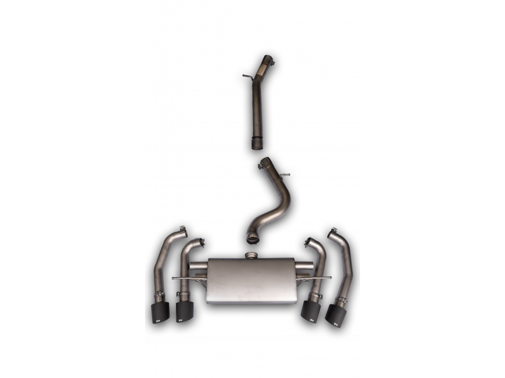 For installation, it is required to replace the rear diffuser with an OEM diffuser with openings for 4 tips.